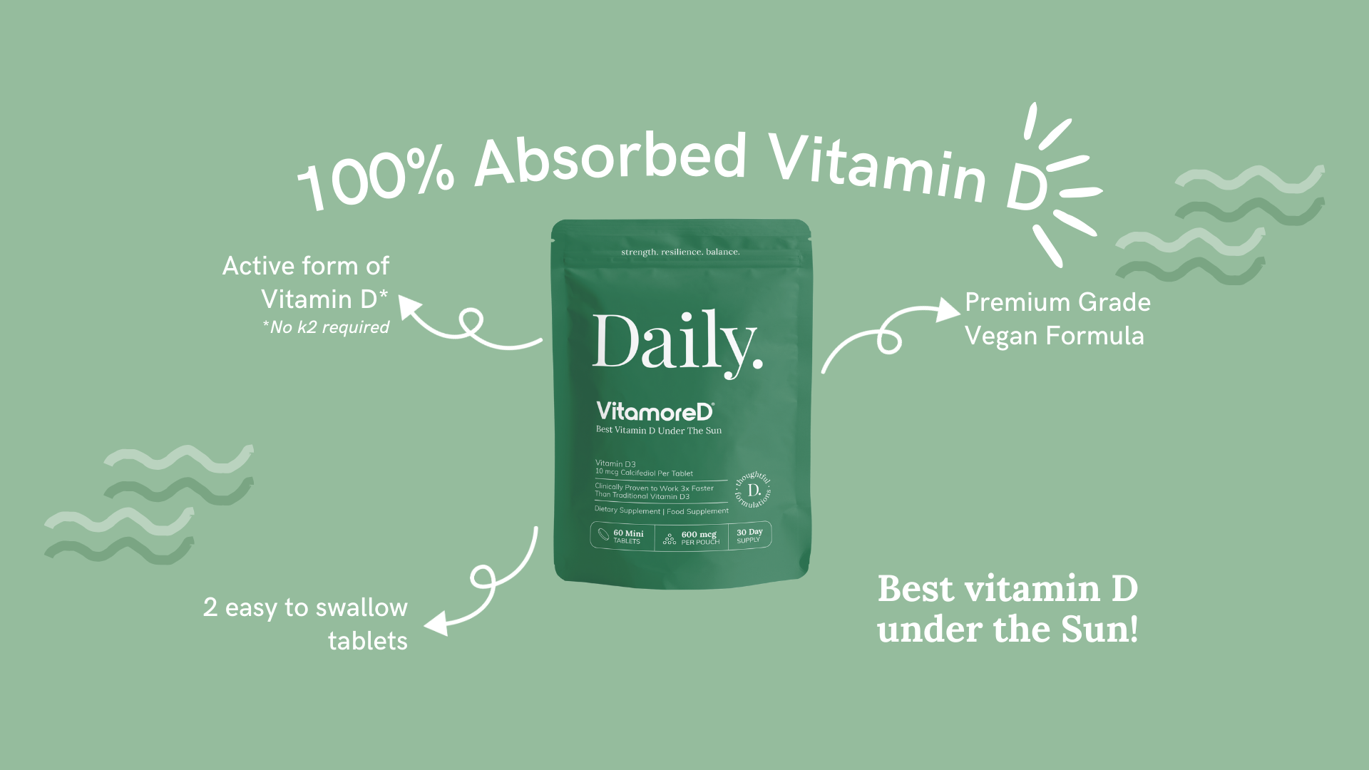 VitamoreD utilises Desmosterol to create the Calcifediol which comes from algae. Making it not only vegan, but naturally packed full of sunshine!