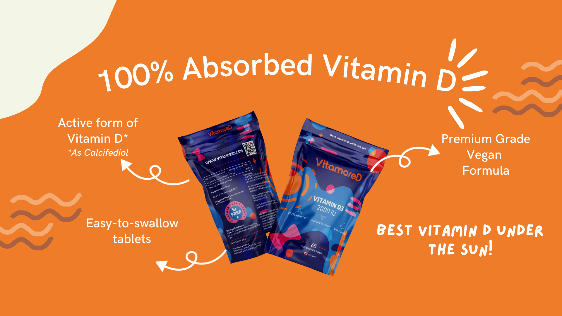 VitamoreD utilises Desmosterol to create the Calcifediol which comes from algae. Making it not only vegan, but naturally packed full of sunshine!